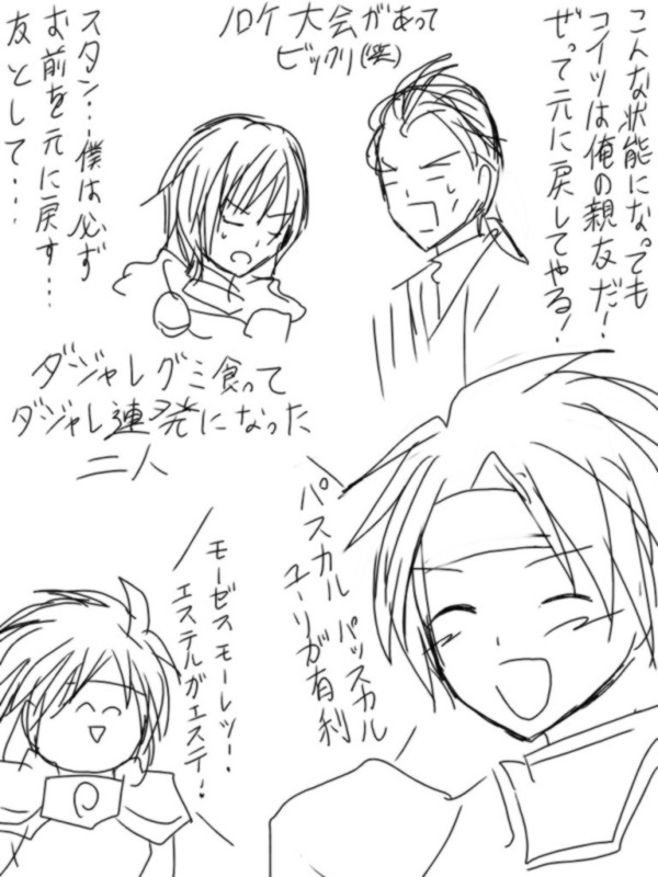 ・全体的な感想はとにかくクレス酷すぎるよ!なんかクレス=ダジャレキャラがすっかり定着してまってるのは何故だ!?ファンタジア本編では「ダオスをだおす」しか言ってないような…他に何か言ってたっけ?ファンタジアの本編中だよ?それ以外は却下よ?