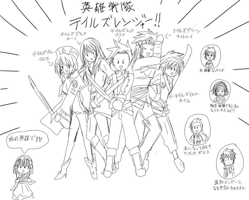 ・つかいままで髪の色とかで選んでたようななのに今回服の色で選んだんならフレンを青にしてもよかったのではないか?(笑)それかヴェイグちゃん。
